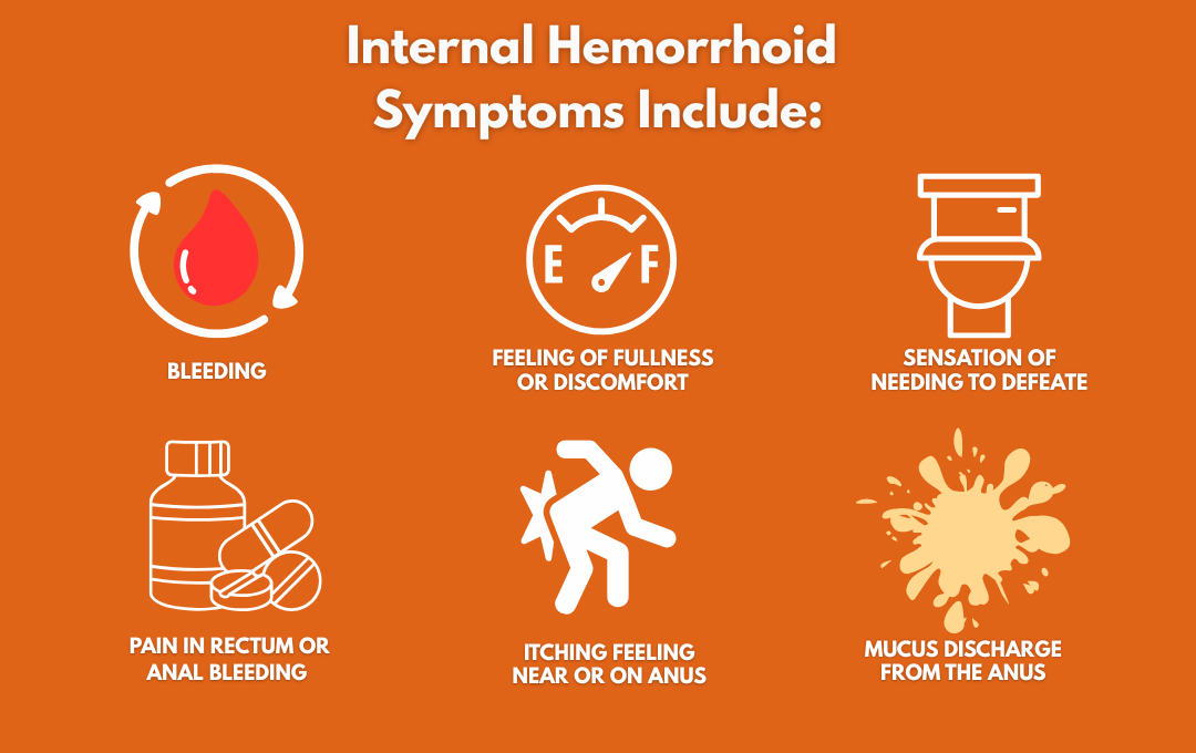 - Grade I: Internal hemorrhoids that bleed but do not prolapse (bulge out) of the anal canal.